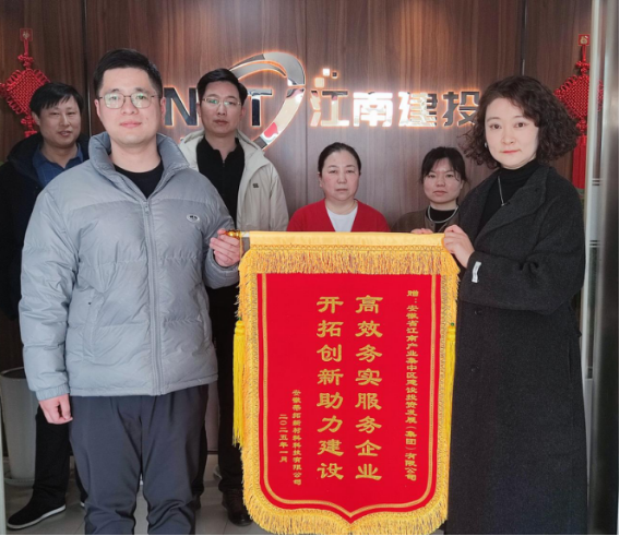 2025年1月17日上午,安徽蒂拓新材料科技有限公司為建投集團送來了錦旗,錦旗上面寫著“高效務實服務企業,開拓創新助力建設”。一面錦旗,不僅是對建投集團熱忱為企辦事的感激,也是對工作人員真情服務的肯定。近年來,建投集團秉承“沒有最好、只有更好,沒有完成時、只有進行時”的服務理念,持續擦亮“綠燈給企業、紅燈給自己”的營商環境品牌,不斷提升服務水平,優化服務質量,為園區企業發展保駕護航。